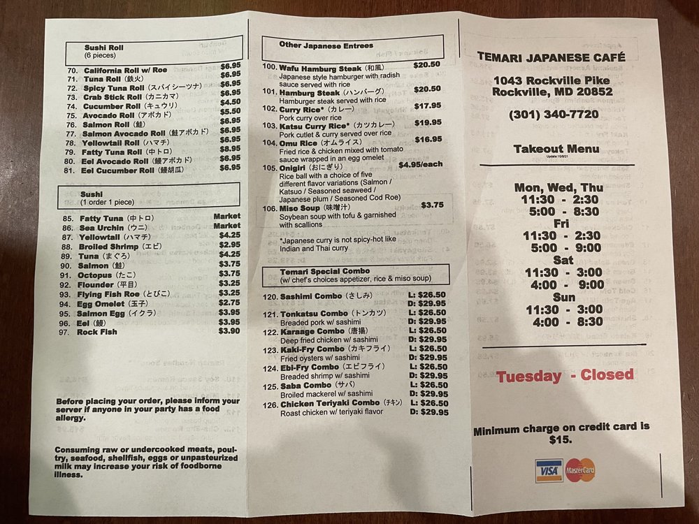 Temari Special Combo (w/ chef’s choice app, rice & miso soup)